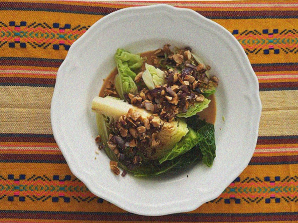 Either way in this restaurant that i do not remember the name of, they served a boiled cabbage with some toppings and it was so nice. I never even thought about boiling cabbage before. It was so tender that I decided to make my own version. Half of the stuff that I wanted to use went off while I was away. I worked with what I had. Only jarred or canned ingredients survived. So you have to excuse me if I throw some weird stuff into the mix. I added some potential replacements. All of the ingredients can be replaced easily with "normal" stuff. Oh well... feel free to judge me based on the content of my fridge.