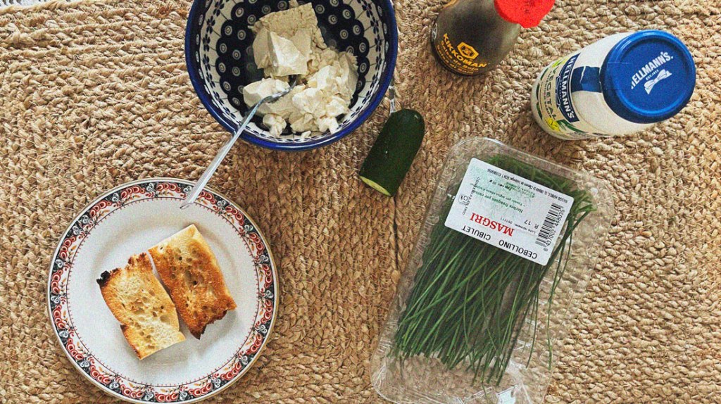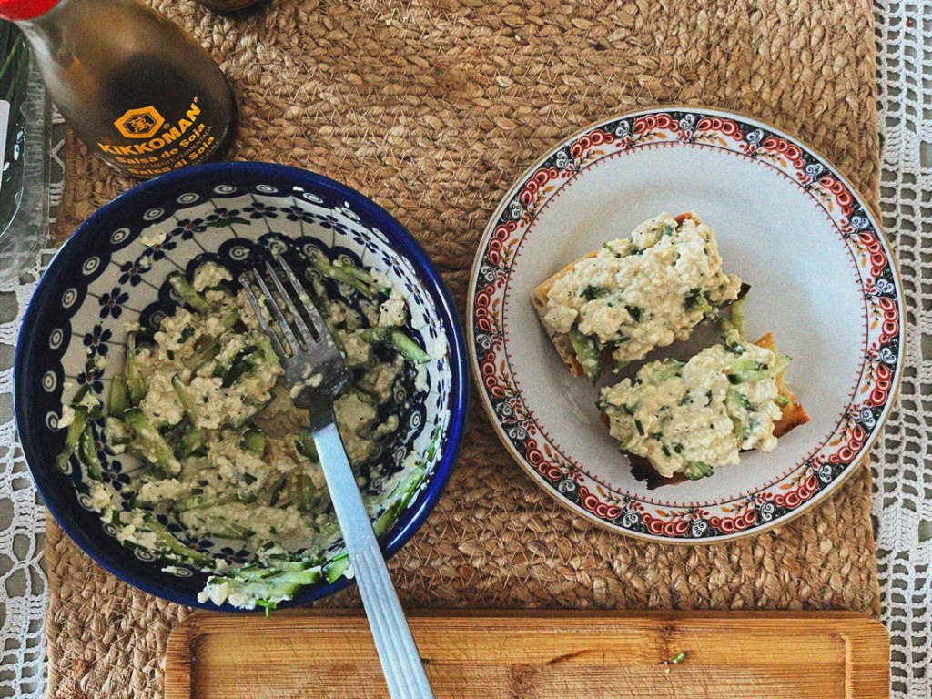 This is super easy and quick but really good tofu is essential. I can’t stress enough that a good tofu dealer is crucial in life😜. Mash tofu together in a bowl. Than add all the spices, mayo and soy sauce.